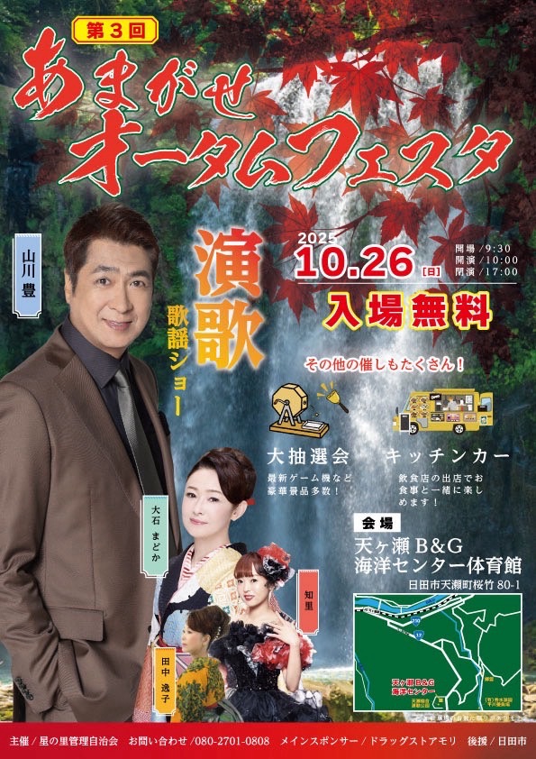 2025年10月26日(日)日田市B&G天瀬 海洋センター体育館にて、第3回あまがせオータムフェスタが開催されました。